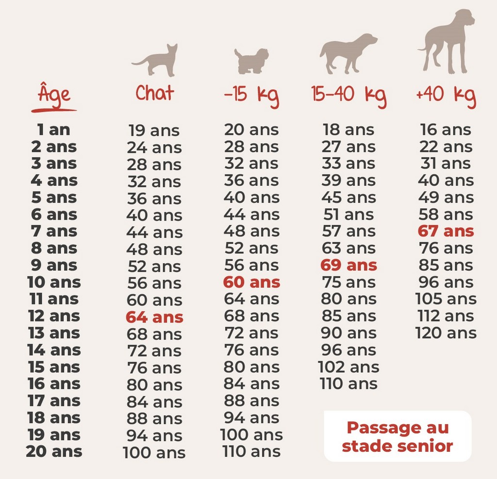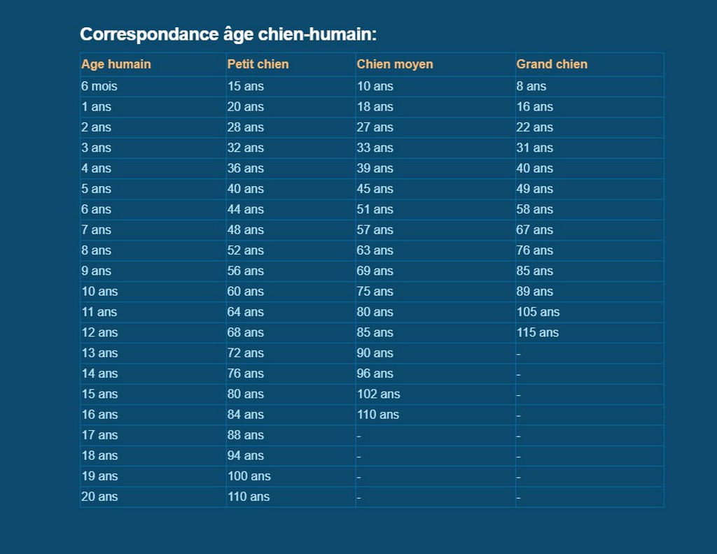 Takže například pes během prvního roku velmi rychle stárne. Věková ekvivalence se navíc liší v závislosti na velikosti psa.